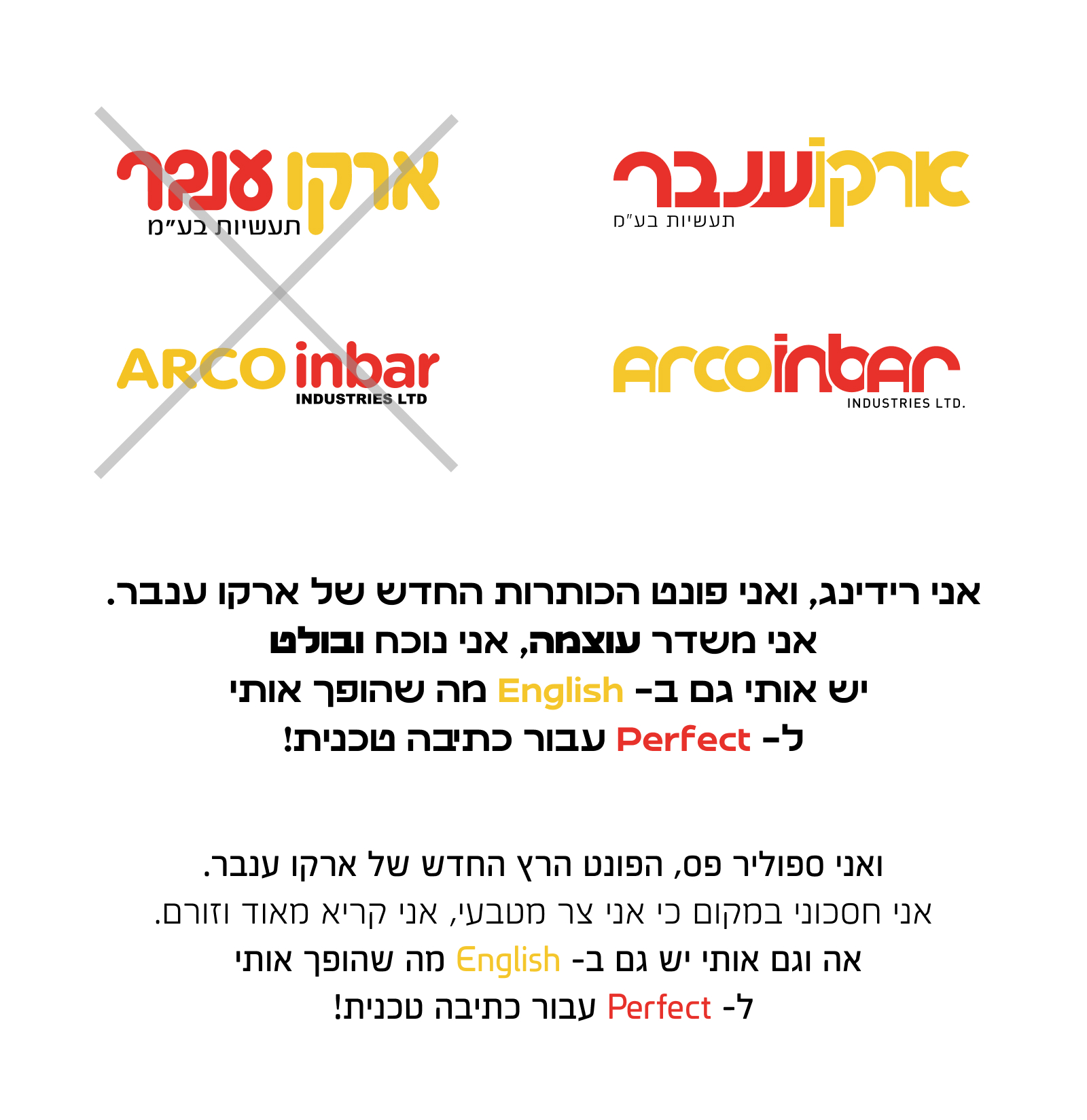 חברת ארקו ענבר תעשיות מתמחה בתכנון וייצור מוצרי פוליאסטר משוריין ופתרונות מתקדמים לתחומי האלקטרומכניקה, התחבורה והתשתיות בדגש על ארונות חשמל ומוצרי חוץ. במסגרת שיתוף הפעולה, אני מעניק לחברה מעטפת קריאייטיב מלאה. לאחר השקת הלוגו החדש, בקרוב יצא לאור קטלוג המוצרים של החברה שלראשונה נערך, עוצב והופק בצורה מקצועית וראויה לחברה המובילה את תחומה בישראל.